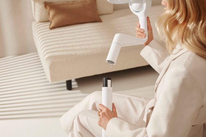 Doté d'un design épuré, disponible en noir ou blanc monochrome avec une finition mate, le Whisper Flex Ultimate se distingue par son col de cygne élégant -qui facilite son déplacement- et sa télécommande (24,99 €) se range discrètement dans les fentes avant et arrière.