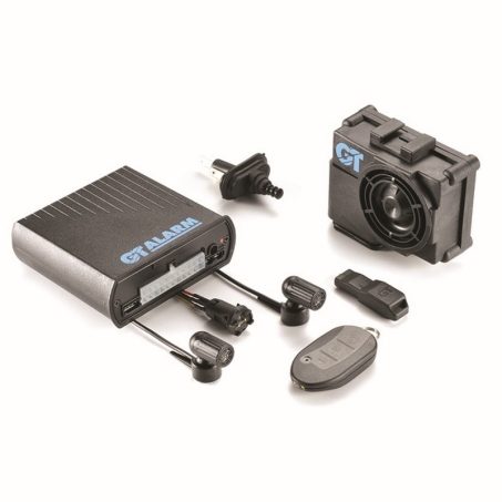 Ce système d’alarme offre une protection périmétrique (portes et capot moteur) et volumétrique. Le kit GT1004 CB comprend tout le nécessaire pour une installation facile : centrale compatible avec tous les véhicules, clé électronique, voyant de contrôle, câblage, protection ultrasonique et sirène radio. En option, il est possible d’ajouter le traqueur GPS GT999.8 Plus (384 € + abonnement) pour une surveillance à distance, qui empêche par ailleurs le moteur de redémarrer après arrêt. Le système s’active à l’aide d’une télécommande. Enfin, une clé électronique (GT969 CH, 30 €) permet le déverrouillage d’urgence.