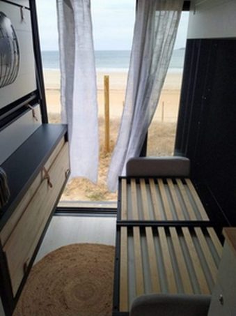 VanCubic propose diverses configurations afin de répondre à un maximum de besoins avec des solutions pour l'espace de vie, la cuisine, la salle d’eau et même le couchage. Pour le salon, des banquettes convertibles en couchage sont installées. Pour les familles, des lits superposés sont également disponibles.