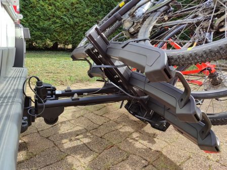 L’Epos est disponible avec deux plateformes pour accueillir deux ou trois vélos. Grâce au système de bras télescopiques et à l’espacement des glissières de 25 cm, il n’est plus nécessaire de décrocher tous les vélos pour n’en retirer qu’un. Autres points forts de ce porte-vélos : il bascule pour accéder aux portes arrière d’un fourgon et qui plus est au coffre d’une voiture.