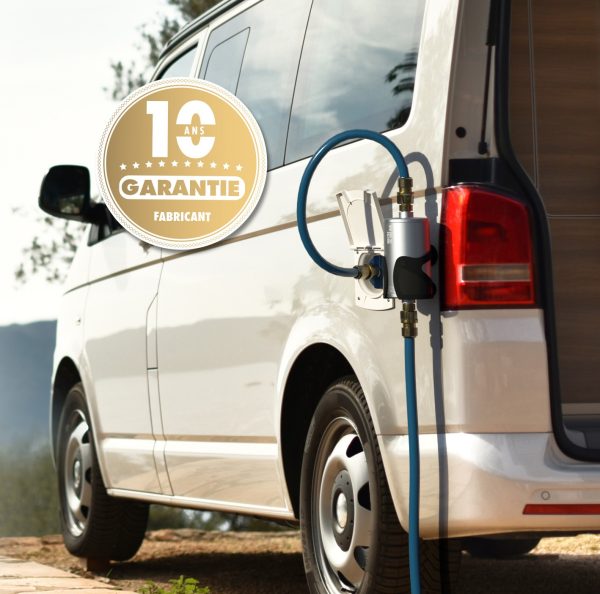 Dans les faits, le filtre de remplissage permet de retenir les impuretés telles que le sable, la rouille... grâce à la cartouche à charbon actif 10 microns incluse. Cette dernière réduit efficacement les odeurs de chlore, les résidus de médicaments, les micro plastiques, les pesticides, les métaux lourds et autres polluants. Ce filtre a le grand avantage d'être compacte et robuste grâce à son boîtier en aluminium massif anodisé, testé et approuvé pour une utilisation alimentaire avec de l’eau potable. Les raccords pour leur part sont en laiton certifiés compatibles Gardena®. Malgré la présence de ce filtre, le remplissage s'effectue rapidement avec une construction spécifique du boîte qui autorise des débits élevés, qu'elle que soit la cartouche utilisée.