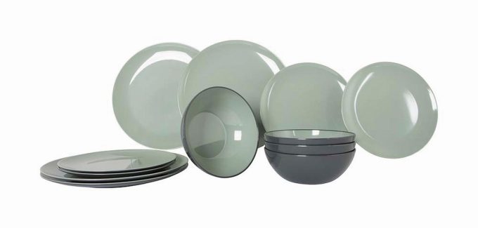 En bleu, gris et vert, cet ensemble de 12 pièces en mélanine tape à l’œil au point qu’on a aussi envie de l’avoir à la maison et d’ailleurs il est compatible lave-vaisselle. Composé de 4 assiettes à dîner, 4 assiettes de petit déjeuner et 4 bols. A retrouver sur le site Campédia.