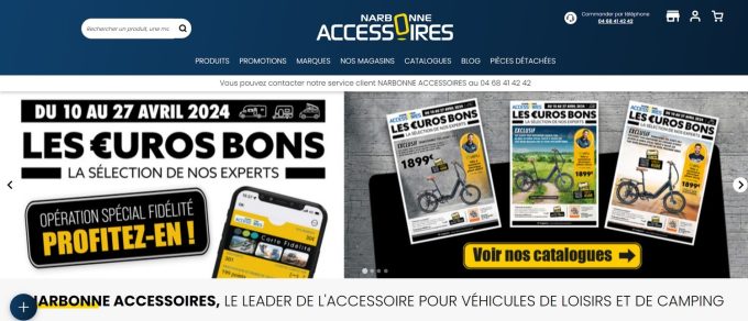Dès la page d'accueil, tout tombe sous la main. On retrouve instantanément les différentes rubriques ayant fait la réussite du site au fil du temps. Les produits, évidemment, juste en dessous du logo de Narbonne, pour mettre la main sur la pépite que vous cherchez parmi les nombreuses références que propose la maison. Les promotions, à côté, car une bonne affaire est toujours possible. Mais aussi un onglet sur toutes les marques figurant dans le réseau, avec un abécédaire aussi lisible que complet. Sans oublier un autre pour feuilleter directement en ligne les catalogues, notamment ceux à destination des camping-cars, des vans et des fourgons aménagés. Tout est donc là, en une petite ligne. Efficace et pratique !