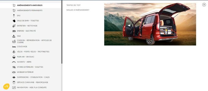 Alors qu'un petit peu plus bas, une autre ligne peut également donner quelques éclaircissements. Bien mise en valeur, avec des couleurs et de belles photos, elle propose de naviguer, en un seul clic, entre différents menus pour découvrir toutes les caractéristiques et bienfaits des accessoires. Energie, plein air, suspensions, climatisation, équipement intérieur mais aussi vélo électrique, art de la table, porte vélo ou encore tout ce qui touche à l'audio et à la vidéo : tout est expliqué avec détails, par la présentation des avantages de certains éléments mais aussi en mettant l'accent sur les engagements de Narbonne Accessoires sur ces produits, dans le but d'avoir une idée plus précise de l'offre.