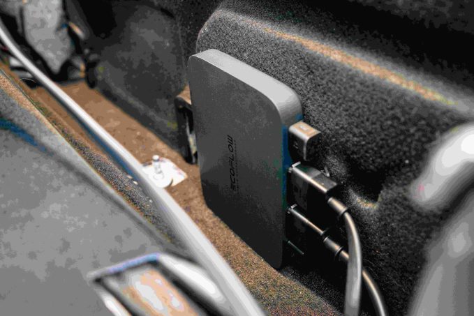 Pour pallier ce problème, Ecoflow a mis au point un chargeur qui se branche sur la batterie moteur du camping-car et permet donc de recharger la batterie Ecoflow lorsque le véhicule roule. Ce système exclusif de la start-up chinoise se veut encore plus efficace que lorsque l'on branche la batterie sur secteur.
