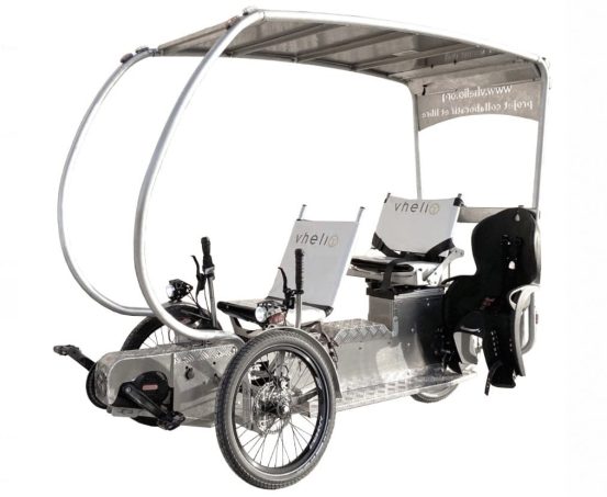 Son toit est recouvert de panneaux solaires et le conducteur pédale en position assise. Ainsi, il peut transporter jusqu’à quatre personnes sans recharger la batterie. Notons que le Vhélio dispose de deux-roues à l’avant et d’une à l’arrière et d’aucun amortisseur.
