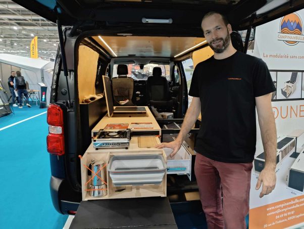 Campinambulle présente une nouveauté au SVDL 2024. Le constructeur bourbonnais est spécialisé dans l’aménagement amovible avec des malles en bois. Ces solutions ingénieuses permettent d’aménager tous les types de véhicules, y compris les citadines. Ainsi, la marque a présenté mardi 24 septembre à Villepinte, une solution d’aménagement dédiée aux vans.