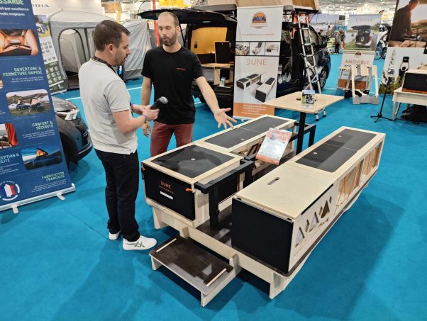 Campinambulle, spécialiste de l'aménagement amovible en bois, dévoile au SVDL 2024 sa dernière innovation, Dune. Cette solution modulable permet d’aménager facilement un van avec des modules pratiques. Fabriquée en bois contreplaqué et avec un design moderne, Dune s’installe en seulement 30 minutes.
