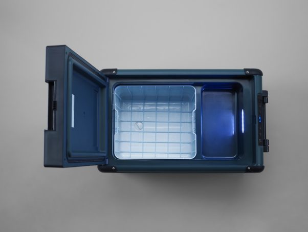 Cette nouvelle glacière électrique à compression, lancée dans un habillement bleu océan, a été conçue en s'appuyant sur du polypropylène. Alors qu'un gros travail a été effectué sur son ergonomie et sa résistance, via des coins renforcés, des poignées escamotables qui se replient automatiquement mais aussi un éclairage LED intégré. Pour correspondre à toutes les attentes et tous les usages, elle a été développée sur quatre formats différents, avec une capacité de stockage de 28 L, 37 L, 45 L et 57 L.