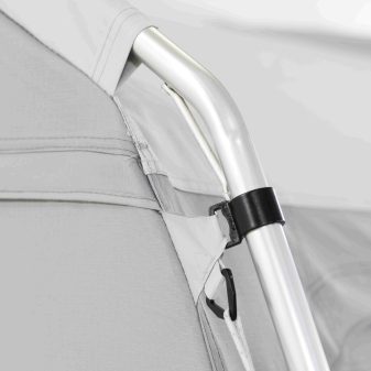 Si le gros de l’innovation de la gamme Tour réside dans la technologie gonflable, certains auvents sont à armatures. Tous sont stabilisés grâce à des sangles QuickPitch qui permettent de réduire le nombre de points d’ancrage tout en rigidifiant la structure.