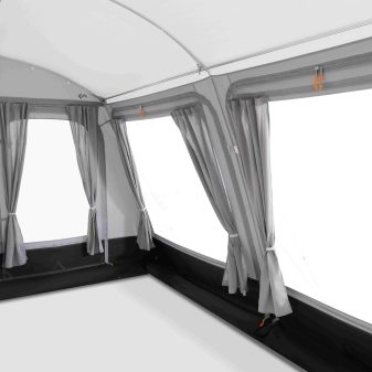 Le design de cette gamme d’auvents est aussi revisité avec de larges fenêtres pour un maximum de luminosité. Dometic commercialise des rideaux pour, au contraire, se mettre à l’abri de la luminosité naturelle. Les coloris évoluent, tout comme les finitions avec des valves et des connecteurs assortis.