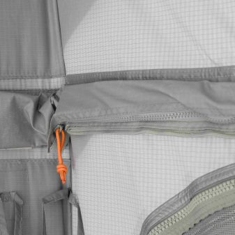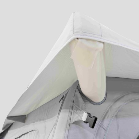Le principal atout de ce système gonflable réside dans la facilité d’installation et de démontage, en quelques secondes seulement, grâce à une armature en tubes gonflables et un gonfleur fourni à l’achat. La nouveauté, c’est également le nouveau tissu WeathershieldTour. Il est doté d’une technologie ripstop permettant de limiter les déchirures. Le tissu est teinté dans la masse, une manière d’éviter les changements de teinte avec le temps. En effet, le polyester ripstop 300D est plus résistant aux UV.