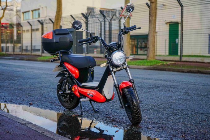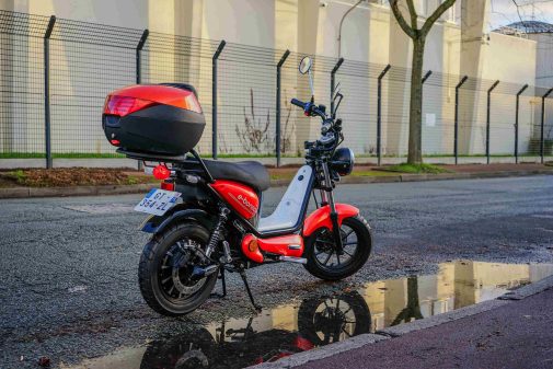 Pour des trajets courts, la position reste confortable et la maniabilité bonne malgré sa petite taille. Il est aussi possible de monter à deux dessus. Pour une utilisation en camping-car, il peut être intéressant d’ajouter un top case (comme sur le modèle essayé) vendu 89 € par la jeune marque basée à Minihy Treguier en Bretagne. Les utilisateurs pourront par exemple y ranger leurs courses.