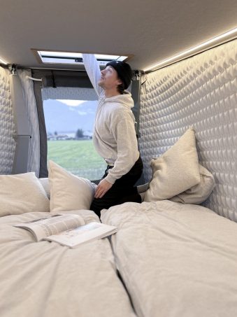 Mais la marque allemande continue d’avancer dans ses recherches, afin d’élaborer de nouveaux produits et notamment sur l'ouverture de ce toit relevable. En effet, le prototype présenté se soulève de manière horizontale pour l'ensemble de la structure afin de disposer d'un espace important sur toute la longueur du toit. Outre une largeur de couchage revendiquée à 135 cm, l'équipementier assure profiter d'une hauteur intérieure de 115 cm. De quoi offrir une sensation d'espace unique ainsi que de la place pour vivre et dormir.