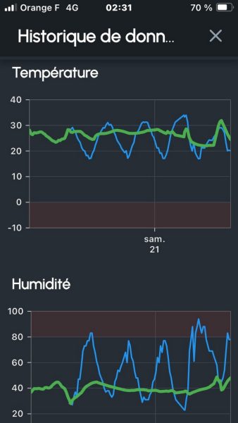 La page d’accueil de l’application localise immédiatement votre camping-car. Un bon point ! Sur cette même page figure un onglet “Confort”. En le sélectionnant du bout du doigt, trois pictogrammes indiquent la température, le taux d’humidité et la qualité de l’air à l’extérieur et dans l’habitacle. Il est tout à fait possible de fixer des limites haute et basse de température et du taux d’humidité, afin d’adapter le système à ses besoins. Les férus de statistiques apprécieront le graphique qui se dessine en se basant sur les données enregistrées des trois thèmes, sur une période de plusieurs jours, voire plusieurs mois. La mémorisation s’effectue toutes les heures. C’est donc très précis et, avouons-le, amusant. Mais est-ce vraiment utile ? Avec le temps, nous pourrons sans doute répondre à cette question.
