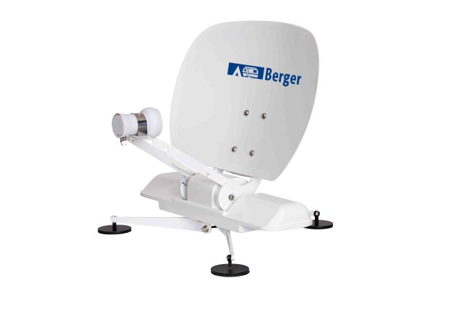Cette première antenne satellite pliable entièrement automatique est peu encombrante et se range aisément dans sa valise rigide. Il suffit de relier l’installation SAT au téléviseur (récepteur intégré) ou à un récepteur individuel pour que l’antenne recherche automatiquement le satellite en l’espace de 1 à 3 minutes. Existe en 2 versions : une ou trois réceptions satellite.