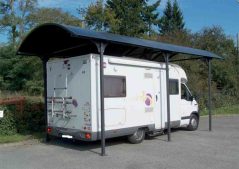 Le groupe français propose une gamme d’abris ouverts aux dimensions XL pour tous les types de véhicules de loisirs. Ils allient robustesse et esthétique en utilisant une structure en aluminium qui repose sur six pieds. Trois modèles sont présents au catalogue. L’Alizé-16 est dédié aux vans, le Hegoa-20 aux fourgons aménagés et le Hegoa-25 aux camping-cars aux grands gabarits.