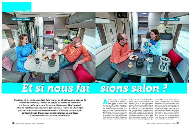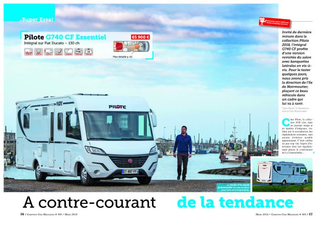 Le nouvel intégral G740 de Pilote a également été passé au crible avec un super essai détaillé. Vous saurez tout sur ce camping-car ! Du côté des camping-cars de Challenger, nous avons testez pour vous les deux types de salon : le maxi salon contre le salon face-face. Les points forts des deux différentes implantations n’auront plus de secret pour vous.