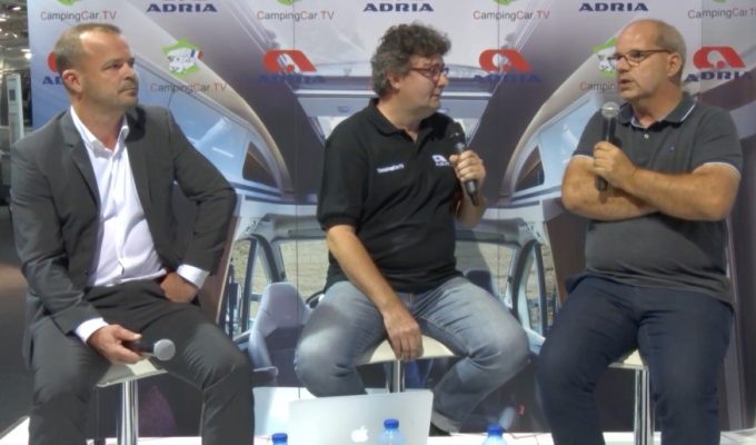 Nous retrouvons le GéOptimiste au salon des véhicules de loisirs où il anime quotidiennement une émission en direct. Aujourd’hui à 11h, il donc inaugurer le premier «Live » sur le plateau TV installé sur le stand du constructeur Adria. Pour cet Adria Live n°1, le GéOptimiste a reçu deux invités : Antoine Boulet, directeur commercial et marketing d’Adria France et Eric Mafrans, administrateur du GUCCA. Retrouvez toutes les vidéos des Adria Live sur www.geoptimiste.com ou sur sa chaine Youtube.