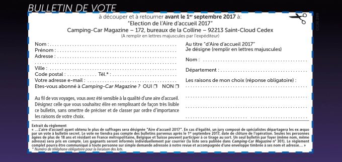 Pour voter, il suffit de renvoyer à la rédaction votre bulletin de vote, disponible dans le Camping-Car Magazine n°299.