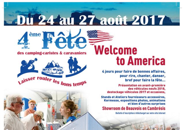 Du 24 au 27 août, se tiendra la 4e fête des camping-caristes et caravaniers organisé par le concessionnaire Lestringuez. L’événement aura pour thème « welcome to America » et se déroulera au Show-room de Beauvois-en-Cambrésis, à 10 min de la ville de Cambrai. Tout le long des festivités, vous pourrez profiter d’animations, de sorties culturelles et touristiques, d’ateliers avec la présence de fournisseurs, l’exposition des dernières collections de camping-cars… Et surtout, la concession Lestringuez vous fera beneficier d’une grande opération de déstockage des véhicules 2017 !