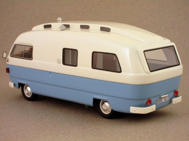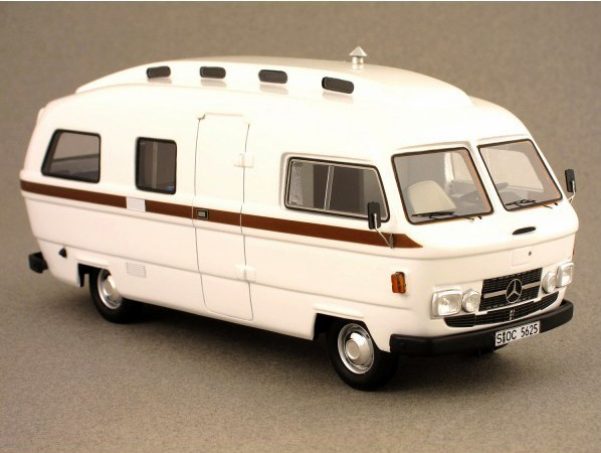Les fans d'anciens camping-cars, comme les collectionneurs de miniatures atypiques, seront ravis de découvrir cet ensemble assez fidèle au modèle original. Ses formes toutes en rondeurs avaient été imaginées par Orion, un constructeur allemand de véhicules de loisirs dans les années 50. Cet intégral repose sur un châssis d'utilitaire Mercedes-Benz L206D, apparu en 1970, lui-même issu d'un Hanomag de 1965. Ce modèle en résine en reproduit tous les détails comme les cheminées d'aération sur le toit. Il est disponible en version blanche (réf. 45625) ou bicolore blanche et bleue (réf. 45627).