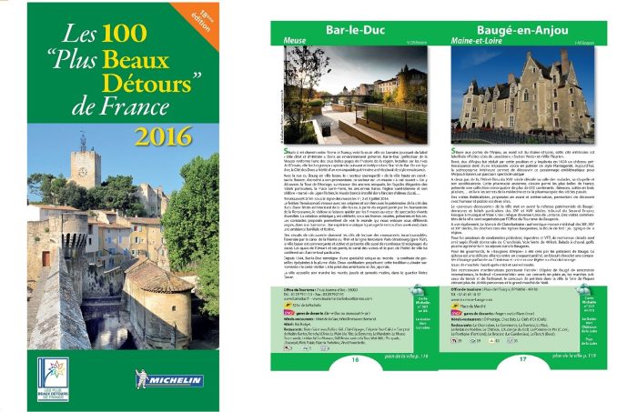 Parmi les nouvelles venues pour 2016, citons l’arrivée de Saint-Claude (Jura), Saint-Jean-d’Angély (Charente-Maritime), Rieux-Volvestre (Haute-Garonne), ou encore le retour d’Avallon (Yonne). Autre nouveauté, les possesseurs du guide 2016 qui auront visité sept villes membres du réseau, visites validées par un cachet de chaque office de tourisme tamponné sur une page dédiée, se verront offrir une carte de France Michelin comportant plus de 160 parcours de liaison pour aller, par une route touristique, d’un des « Plus Beaux Détours » à un autre…