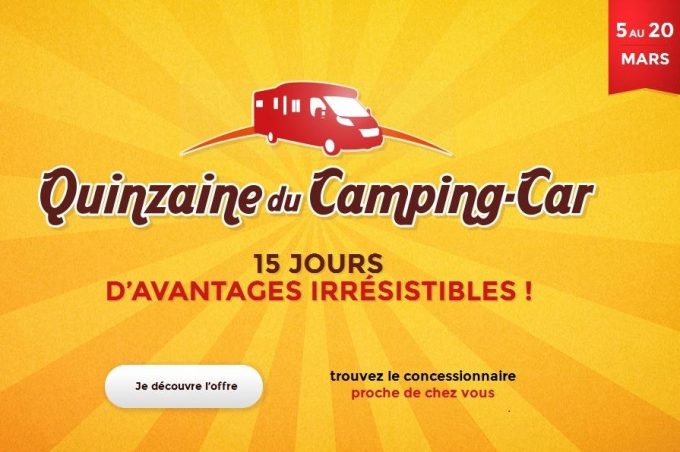 L’édition 2016 se déroule du 5 au 20 mars, partout en France. Cet événement, qui a pour but de promouvoir le camping-car, se traduit, entre autres, par diverses opérations commerciales permettant aux futurs acheteurs d’un modèle neuf ou d’occasion de réaliser une vraie bonne affaire.