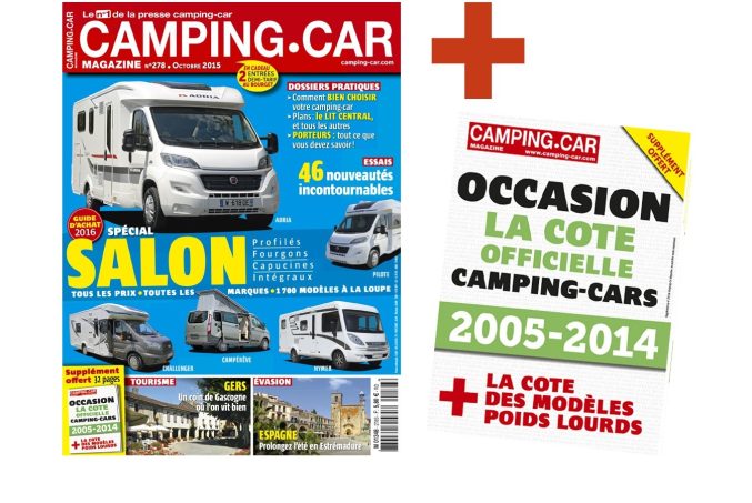 Et en bonus, le N°278 de Camping-Car Magazine est accompagné d’un supplément répertoriant la cote de l’occasion des modèles commercialisés de 2005 à 2014, et des versions poids-lourds allant de 2007 à 2014.