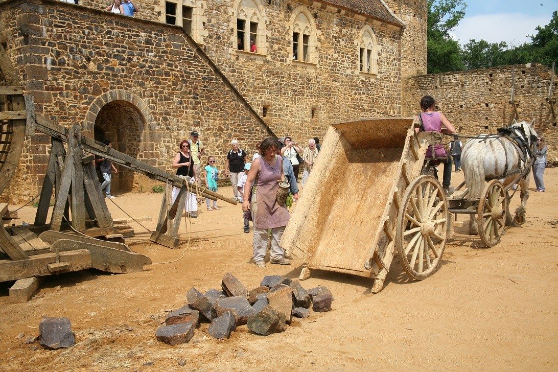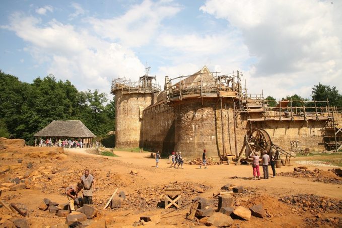C’est sur la petite commune de Treigny (89) qu’en 1997, l’aventure a débuté. Construire un château fort du 13e siècle… comme il aurait été construit à l’époque. Tailleurs de pierre, maçons, charpentiers, forgerons, tuiliers ou encore cordiers le réalisent sous vos yeux et c’est assez fabuleux à découvrir. Tous travaillent comme au Moyen âge.