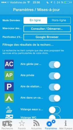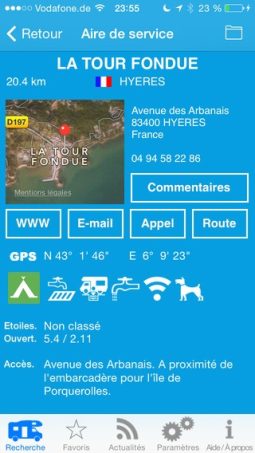 La version premium de Aires C.Car +, c’est aussi la possibilité de consulter l’application hors ligne (pas besoin de connexion Internet, donc pas de coût) ; un vrai plus pour vos séjours à l’étranger ou lorsque le réseau Internet n’est pas accessible !