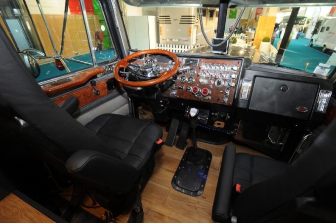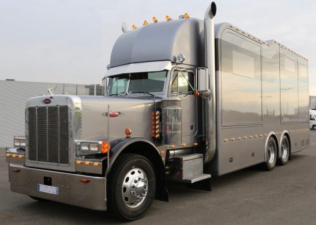 Le porteur est un truck Peterbilt de 500 ch importé des Etats-Unis -après avoir roulé près de 3 millions de kilomètres !-. La cellule a été imaginée et réalisée par les ateliers Verschueren en Belgique, une société installée près de Tournai. Le tout appartient à un ancien entrepreneur français qui a voulu se faire plaisir à l'heure de la retraite,L’impressionnante machine à voyager mesure 12 m de long pour 4 m de haut. Elle embarque une réserve de 1500 litres d'eau propre (800 l. pour les eaux usées), près d'une tonne de batteries (au Lithium), un groupe électrogène, une climatisation complète… L'intérieur allie élégance et beaux matériaux (parquet en chaîne massif, sellerie cuir pleine fleur, plan de travail en granit). En bonus, sur le flanc gauche, deux espaces extensibles permettent de disposer de davantage d’habitabilité à l'étape.>>> Cliquez ici pour une visite à 360° du Peterbilt Verschueren