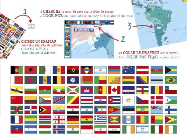 Voici désormais un inédit, le premier planisphère Michelin destiné aux 6-10 ans. Ce petit cadeau de complément, à mettre sous le sapin, révélera peut-être l’envie de voyager à vos enfants ou petits-enfants. Ce planisphère est plastifié (pour durer) et ses dimensions (90x 60 cm) sont étudiées pour qu’il se positionne facilement au-dessus d’un bureau. Fournis avec, des drapeaux autocollants à placer sur chaque pays, invitent à s’initier à la géographie du monde tout en s’amusant. C’est bien vu !