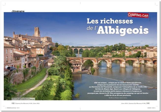 Pour ce qui est des voyages, Camping-Car Magazine vous propose d’aller en Roumanie, aux confins de l’Europe. Ce pays accueillant regorge de singularités culturelles encore (à tort) méconnues. En France, l’itinéraire proposé ce mois-ci dans votre magazine, vous propose de découvrir les richesses de l’Albigeois. A Albi, nombre de ses monuments sont inscrit au patrimoine de l’humanité. Quant aux villages en périphérie de la ville médiévale, ils sont de véritables petits joyaux à ne rater sous aucun prétexte ! Et pour achever de vous convaincre de visiter la région, sachez que la 19e édition de la Fête Européenne du camping-car se tiendra justement à Albi du 18 au 20 mai prochain !
