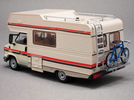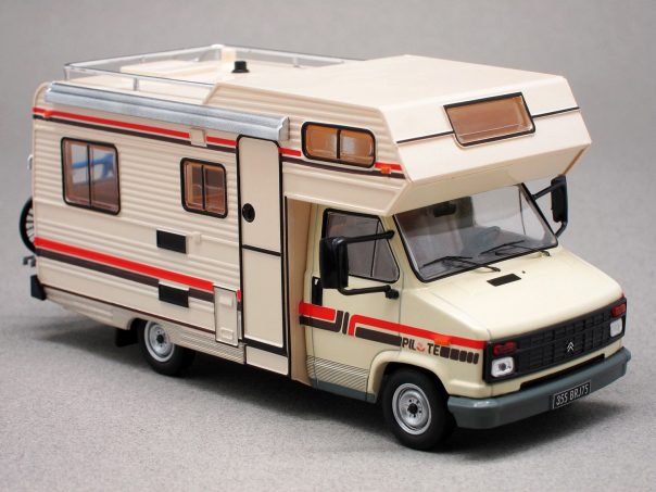 Depuis leur premier utilitaire conçu en commun, les marques Citroën et Fiat n’ont cessé de travailler ensemble. Pilote s’est servi d’un châssis cabine C25, estampillé de deux chevrons sur sa calandre, pour y poser une cellule à capucine. Cette miniature reproduit fidèlement, à l’échelle 1/43e (réf.IXOCAC001), le modèle Pilote R470 de 1984 affichant 5,57 m de long. Elle est dotée, à l'intérieur, de deux dînettes et de cinq couchages. A l'extérieur, elle reprend la couleur beige spécifique de l'époque, le store latéral ainsi que l'échelle d'accès au toit et le porte-vélos.