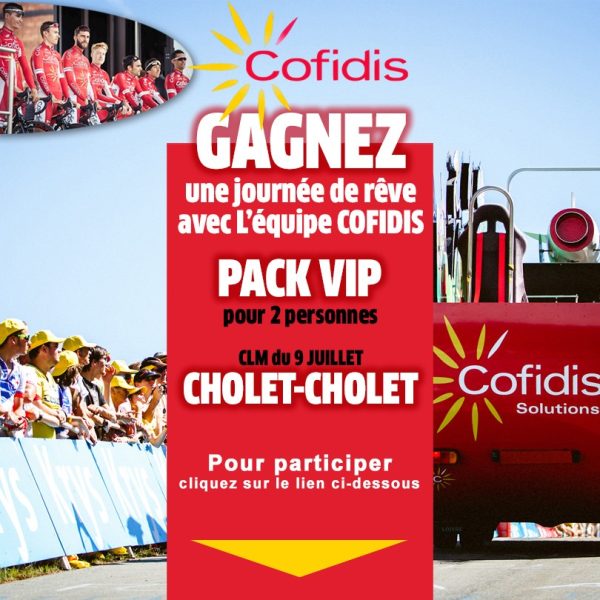 Soyez les invités d'honneur de l'équipe cycliste Cofidis, le temps d'une journée, lors du contre la montre Cholet-Cholet, le 9 juillet 2018.