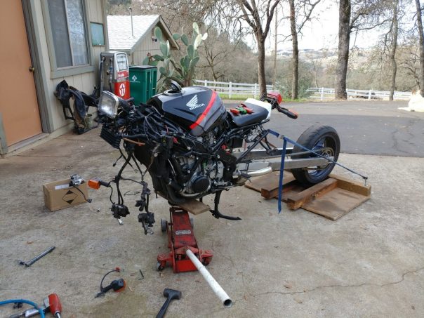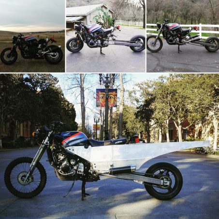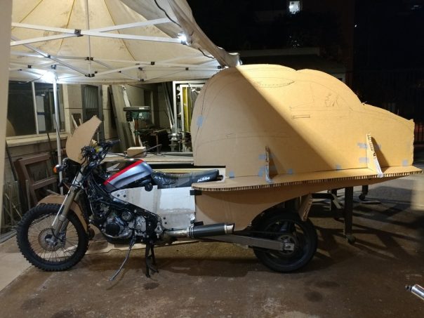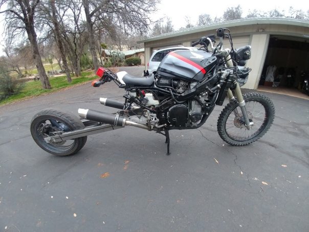 Ce véhicule atypique (vous en conviendrez) use d'origine d'un châssis d’une Honda CBR 1000 (de 1993) modifiée sur l’avant avec le bras d’une Honda CR 500.