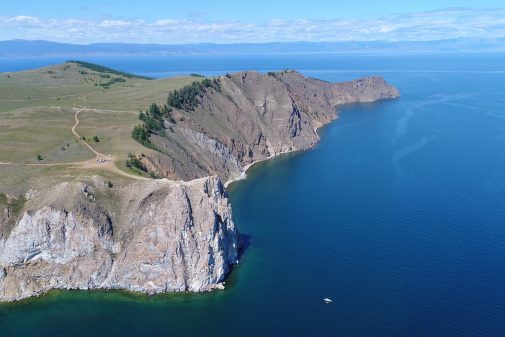 Direction la Russie pour passer une nuit au milieu de nulle part. Les petits points que l’on aperçoit à la croisée des chemins, en haut de la falaise, sont des camping-cars. Une chose est sure : on ne risque pas d’être dérangé par le voisinage.