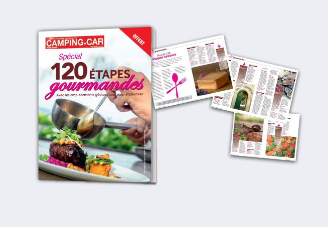 Camping-Car Magazine vous propose de télécharger gratuitement le guide des 120 étapes gourmandes. Dans ce supplément numérique, vous trouverez des idées de sorties et de visites pour découvrir la gastronomie de nos régions. Fromagerie, vignoble, exploitation, confiserie… autant d’escales gourmandes, où les camping-caristes peuvent stationner facilement. Répertoriées par région, ces bonnes adresses vous permettront, au fil de vos voyages en camping-car, de partir à la découverte des produits du terroir de France ! Pour obtenir ce guide des 120 étapes gourmandes, il vous suffit de suivre ce lien et de vous inscrire au formulaire. Vous recevrez le fichier par mail en quelques minutes !
