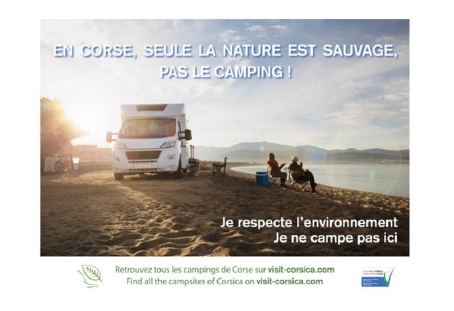 "En Corse, seule la nature est sauvage... Pas le camping !" A travers ce joli slogan, l'Agence de Tourisme de la Corse (ATC) lance une campagne de sensibilisation pour lutter (une fois de plus) contre le stationnement sauvage des camping-cars. L'agence en charge de la politique touristique de l'île entend ainsi inciter les camping-caristes à faire étape dans des établissements et aires dédiées.