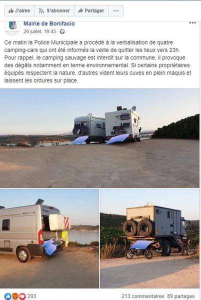 Après l'épisode des contraventions dressées par les policiers municipaux de Bonifacio le 26 juillet dernier pour "camping sauvage", celui de l'écotaxe et des bouteilles de gaz, la fronde contre les camping-cars semble donc continuer en Corse.