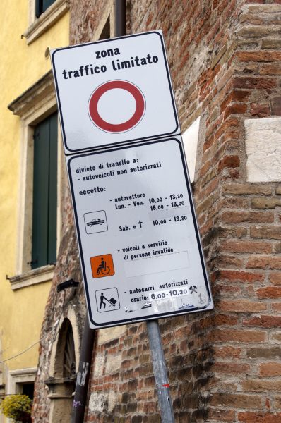 Les ZTL sont délimitées par des panneaux en italien qui ne sont pas forcément visibles ni repérables quand on ne les connaît pas. Ils sont souvent installés en hauteur, à proximité des caméras de surveillance. image