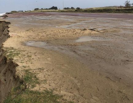 Cette compétence est détenue par la communauté de communes qui peut réaliser une Gestion des Milieux Aquatiques et Prévention des Inondations conjointement avec la préfecture.imagePour l’instant un enrochement a été demandé , mais la tendance actuelle est au retrait, la réouverture de l’aire serait donc compromise. Une pétition avait déjà été lancée à Gouville-Sur-Mer en décembre pour interpeller l’Etat afin qu’il prenne ses responsabilités. Elisabeth Borne, ministre de la transition écologique et solidaire, était sur place le 14 février pour constater les dégâts et discuter avec les élus des problématiques de gestion du trait de côte.