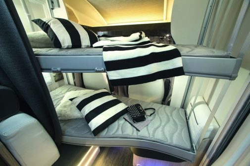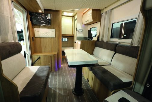 Le constructeur C.I. proposait déjà un véhicule sans lit au sol, dans sa série peu exposée Magis. Cette année, la marque toscanne ambitionne un avenir plus radieux à ce type d’implantation, en l’intégrant dans son entrée de gamme Horon Go. Pour ce faire, C.I. mise sur un suréquipement de base important (store extérieur, antenne satellite et TV, panneau solaire, caméra de recul…) au prix attractif de 47 490 €.