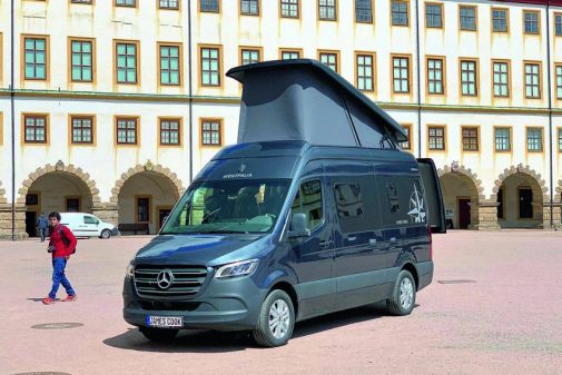 Le toit relevable sur les grands fourgons n’est pas une nouveauté. Depuis 2008, Pössl, Globecar et Hymer le proposent (en option) sur certains de leurs camping-cars en Fiat Ducato, Citroën Jumper ou, plus récemment, Mercedes Sprinter.