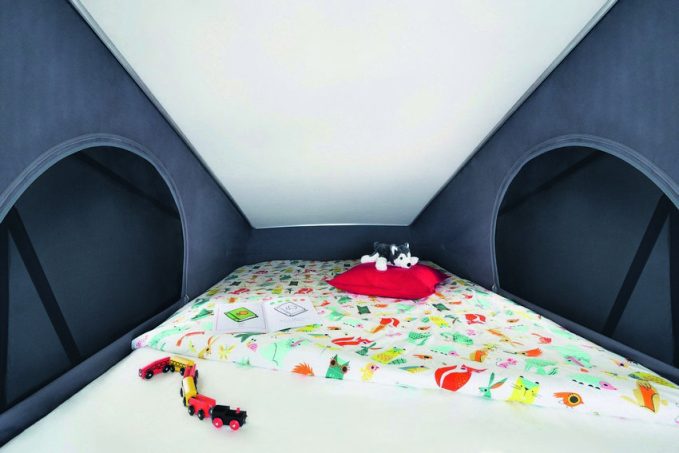Ils ont été rejoints, depuis deux ans, par d’autres aménageurs comme Pilote-Bavaria ou encore Westfalia. Cette solution héritée des petits vans –pour lesquels cet appendice est indispensable, ne serait-ce que pour permettre de se tenir debout à bord…– permet de doubler la capacité de couchage sans pour autant influer sur l’implantation au sol du véhicule “receveur”. Ce qui laisse une grande liberté de choix tant en ce qui concerne le couchage (transversal, lits jumeaux…) que la longueur totale, puisque le toit relevable peut aussi bien être installé sur une unité courte que longue.
