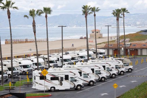 Une flotte de camping-cars américains a investi le parking de Dockweiler RV Park. Jusque-là rien d'étonnant, puisque cette aire réservée située à El Segundo, le long de la baie de Santa Monica, est une destination prisée en temps normal des camping-caristes. Une scène banale donc, qui pourrait simplement faire penser à une période de vacances avec cette centaine de véhicules, soigneusement garés en bataille et profitant de la vue sur l'océan. Malheureusement, la réalité est tout autre.