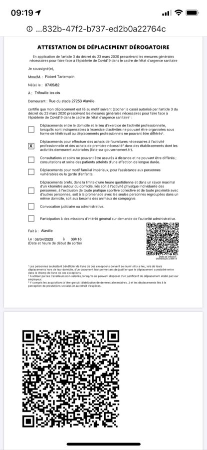 Lorsqu'on se retrouve confiné en camping-car, on doit, comme tout autre citoyen, pouvoir présenter une attestation dérogatoire de sortie lorsqu'on va faire ses courses ou une courte balade dans un périmètre d'un kilomètre autour de son lieu de confinement, promener son chien ou se rendre chez le médecin. Mais on a très rarement à bord de son véhicule une imprimante. Il fallait donc recopier une partie de l'attestation sur papier libre ou faire appel à la solidarité des voisins ou du maire de la ville où l'on stationne.