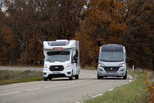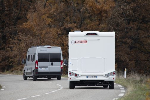 Même si nos camping-cars n’ont rien de sportifs, la tenue de route reste un sujet important, ne serait-ce que pour parer aux aléas quotidiens que nous réserve la circulation (surprise dans un virage qui se referme, réaction inattendue des autres usagers…). Sur ce point, le fourgon l’emporte encore grâce à une meilleure rigidité, l’entièreté de sa carrosserie y participant quand le profilé ne peut compter que sur son châssis, la cellule étant peu structurelle et se montrant plutôt flexible. Même constat concernant le confort sur la route. En effet, le fourgon aménagé correspond plus à l’utilitaire mis au point par son constructeur. Sa suspension fonctionne donc de manière plus optimale. De même, la partie habitation étant plus rigide, les bruits parasites du mobilier sont moins présents.
