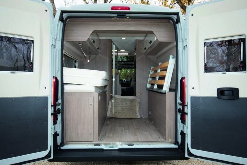 Les fourgons peuvent compter sur une vaste soute à l’arrière, sous le lit. Ce dernier étant systématiquement divisé en plusieurs parties rabattables, cela permet de moduler le volume de chargement tandis que les grandes portes battantes en facilitent l’accès. Dans l’habitacle, les rangements sont plus chiches avec des placards hauts à la profondeur limitée, et parfois secondés d’une penderie (notons l’ingénieuse Modul’Space du groupe Rapido).